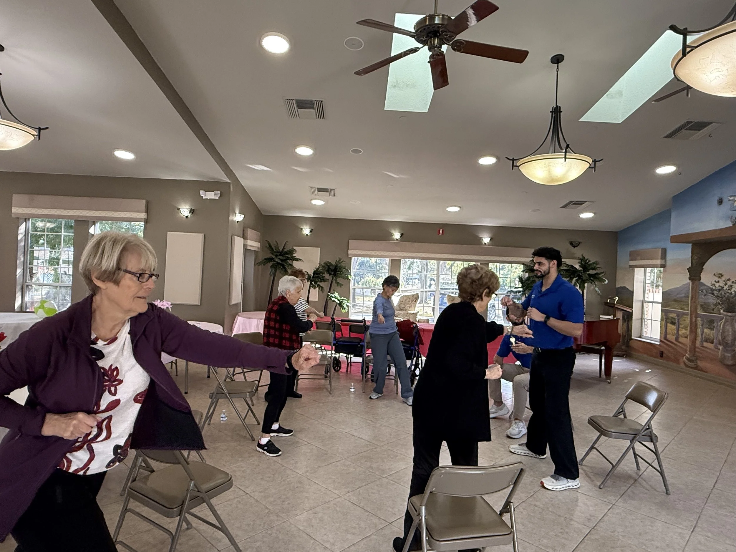 The class fostered an encouraging and supportive environment, allowing residents to move at their own pace while receiving personalized attention and motivation. This collaborative experience not only promoted physical wellness but also provided meaningful interaction between residents and future healthcare professionals.